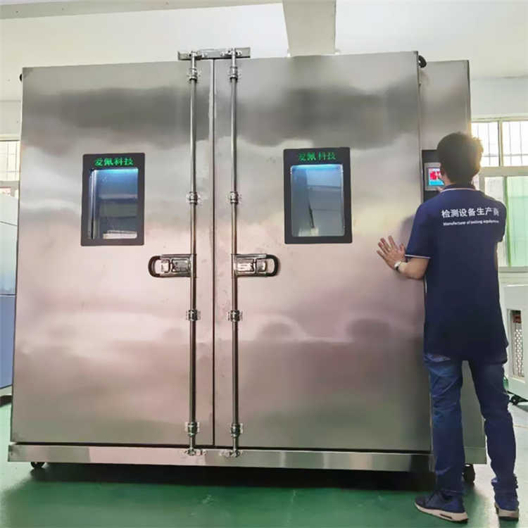 步入式高低温环境箱由库板结构、风道循环系统、触摸屏控制系统、低温制冷系统、高温加热系统、湿热加湿系统,室内测试架构等组合而成。应用于工业大型材料成品或者半成品,如大型大量的LED灯具、LED显示器、光电行业、汽车配件行业、玻璃行业、电子零件等众多工业领域。