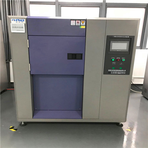 三箱设备区分为:低温区、测高温区、试区三部分,测试产品置于测试区,冲击时高温区或低温区的温度冲入测试区进行冲击, 测试产品为静态式。