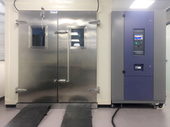 步入式恒温恒湿房为业界提供大型零件、半成品、成品的温湿度换将测试,如:计算机终端机、汽车零组件。恒温恒湿主要由控制面板、配电盘、保温库板、送风机、加热器、加湿器、冷冻机组合而成,主要规格可区分为6种标准室内尺寸及24种不同条件测试规范。