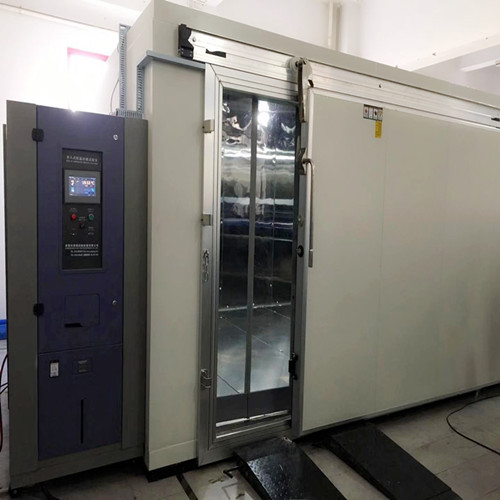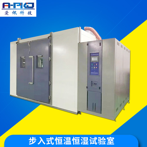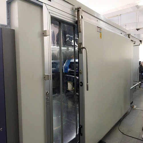 恒温恒湿实验房是由优质碳素钢板,表面作静电彩色喷塑处理+聚胺标准保温板、型材模块化结构组合式安装的大型实验房。本试验房用于给大型的工业待试产品如汽车配件、电视机配件或成品、长型灯具、大型显示器、玻璃制品、光电通讯产品、仪器仪表、电工、电子产品、化工涂料、家用电器、航空航天及各种工业产品及相关产品的零部件在高温、低温、恒温、恒湿、的环境下生产、贮存、运输、使用时的提前适应性批量试验或抽检试验。本设备主要特点就是尺寸大、可以做成单开门或双开门设计、人及物品可同时进入房间整理,可以随意步入或步出,爱佩厂家主要根据顾客的产品大小定尺寸后对产品按照国家标准要求在高温、低温、恒温、恒湿、高低温交变湿热的条件下对测试物品的物理试验以及其它相关特性进行环境模拟测试,通过测试结果来判断测试物品的性能,是否仍然能够符合预定的要求,以便于检出不符合标准的产品进行改变设计、改进质量、加强管理鉴定等有极大的帮助。