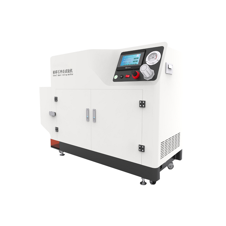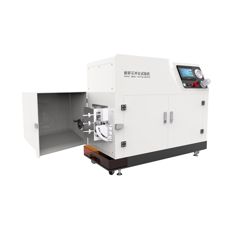 耐碎石冲击试验机是一种专门用于测试材料在遭受碎石或其他尖锐物体冲击时的抗冲击性能的设备。基于自由落体或高速喷射等原理,通过模拟碎石或其他尖锐物体对材料表面的冲击作用,来评估材料的抗冲击能力。试验过程中,通常将一定质量的碎石或钢丸放置于特定装置中,通过控制其下落速度、角度和撞击次数,使碎石以一定的能量撞击待测材料表面。随后,利用高精度传感器和光电控制系统监测材料的变形、裂纹或破损情况,从而准确评估材料的抗冲击性能。