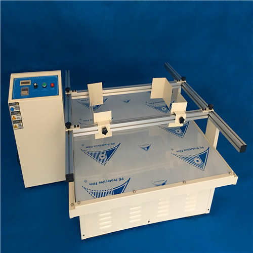 此设备是根据美国及欧洲运输标准,并参照美国同类设备改进制造。利用偏心轴承在旋转中产生随圆形的运动轨迹来模拟汽车或轮船运输过程中货物产生的振动,碰撞。将测试平台固定在偏心轴承上,当偏心轴承转动时,测试平台的整个平面就会产生随圆形的上下前后运动,调整偏心轴随转动速度相当于调整汽车或轮船的行驶速度。